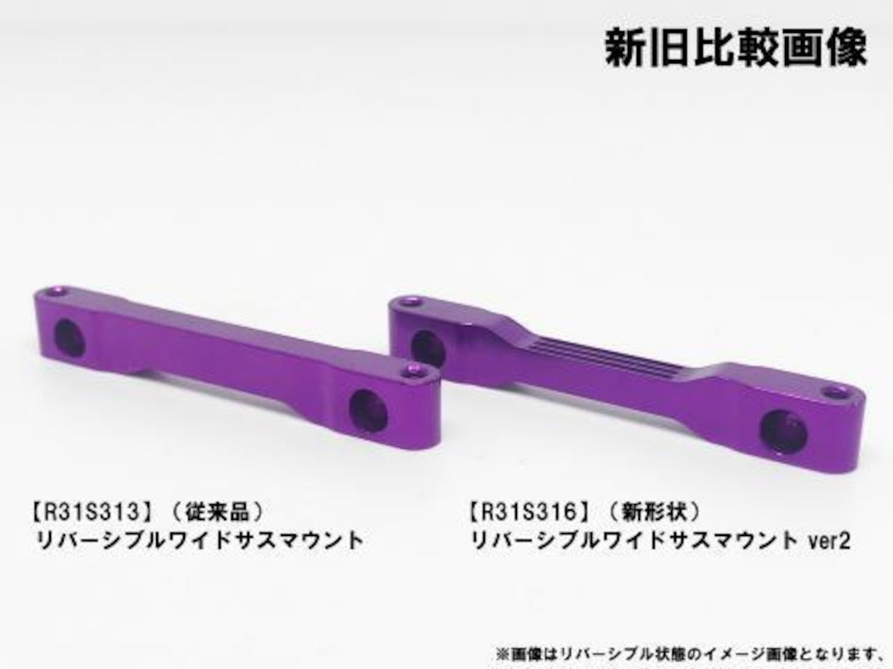 While keeping the specifications of the conventional [R31S313] Reversible Wide Suspension Mount, the shape has been revised to ensure visibility and clearance when the reversible is installed.